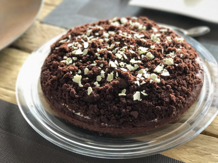 Den Maulwurfskuchen für mindestens 2 – 3 Stunden in den Kühlschrank stellen. Vor dem Servieren kann man noch ein paar weiße Schokoflocken drüber streuen.